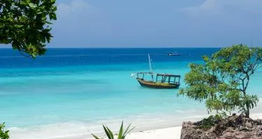 من أجمل شواطئ زنجبار حيث الرمال البيضاء والمياه الصافية .